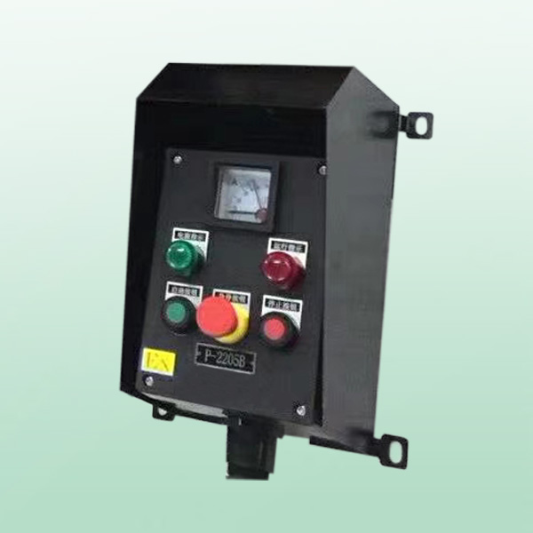 2.增安型外殼,內(nèi)裝防爆防元件(控制按鈕、轉(zhuǎn)換開關(guān)、信號燈、電位器、電流表等)和接線端子,元件安裝簡便,導(dǎo)軌式結(jié)構(gòu),能快速安裝在帶定位的導(dǎo)軌上(保證元件在確定位置上),方便安裝和檢修。
